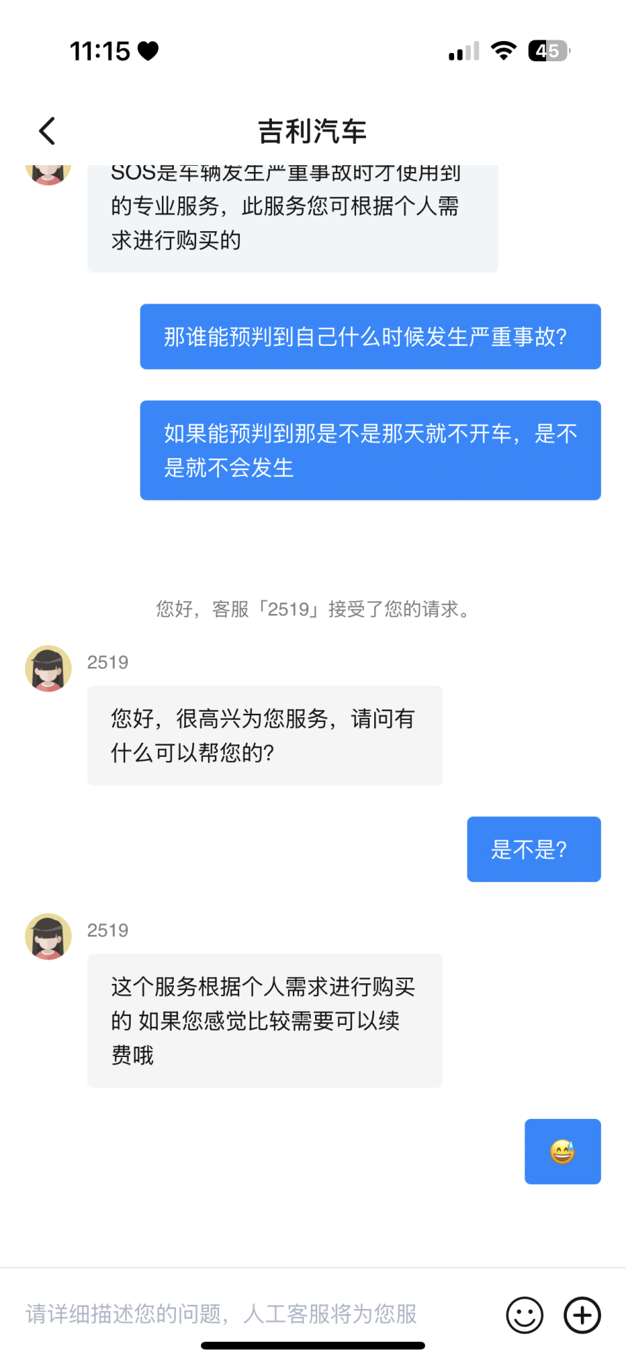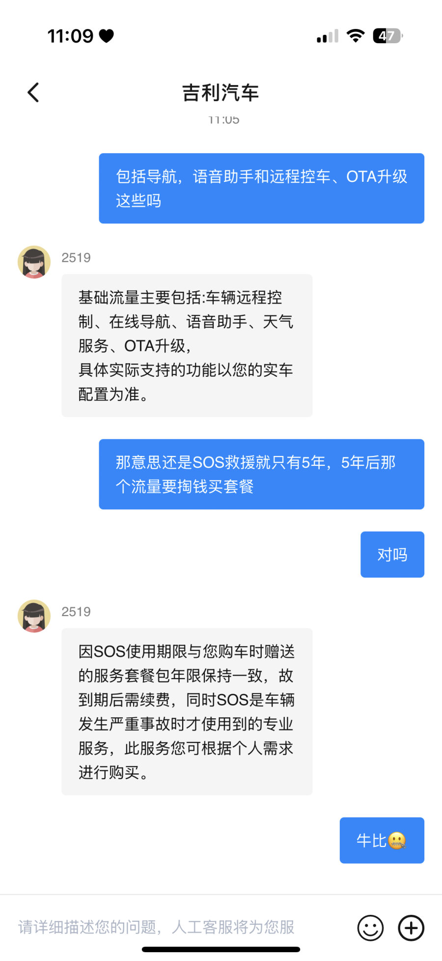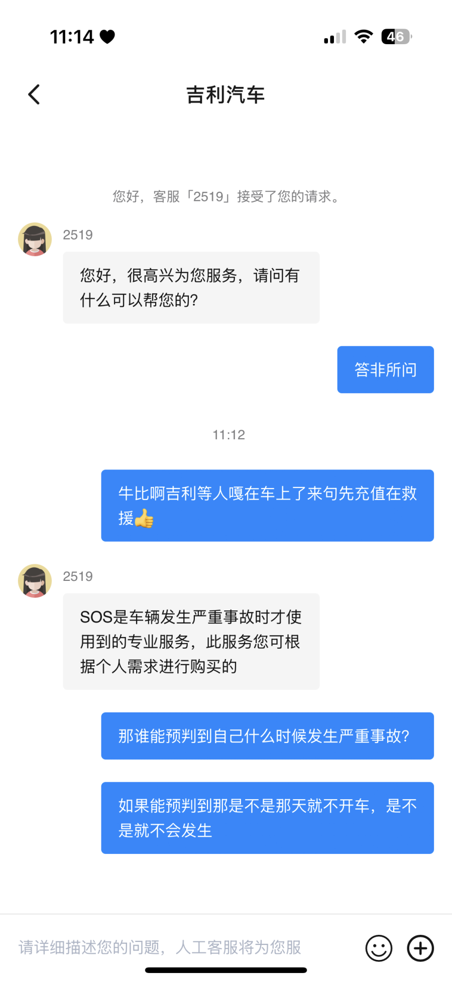 基礎(chǔ)流量5年過(guò)期以后SOS救援系統(tǒng)服務(wù)需要付費(fèi)才可以使用,吉利汽車(chē)的人工客服說(shuō)如果需要就訂購(gòu),那個(gè)這東西誰(shuí)知道什么時(shí)候發(fā)生安全事故人工客服說(shuō)“如果發(fā)生重大的安全事故”,那等發(fā)生事故了我在車(chē)上需要救援了難道要讓我現(xiàn)場(chǎng)交錢(qián)之后才能獲得救援嗎,買(mǎi)車(chē)的時(shí)候銷(xiāo)售承諾的5年之后除了娛樂(lè)之外,其它包括有導(dǎo)航out更新、遠(yuǎn)程控車(chē)、語(yǔ)音助手、SOS救援免費(fèi),這承諾的是放屁嗎欺詐消費(fèi)者嗎