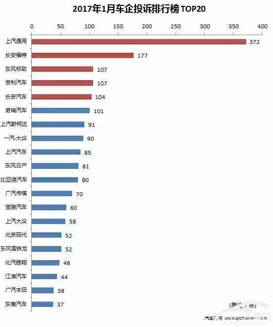 1月車企質量投訴排行榜:寶駿汽車成績斐然