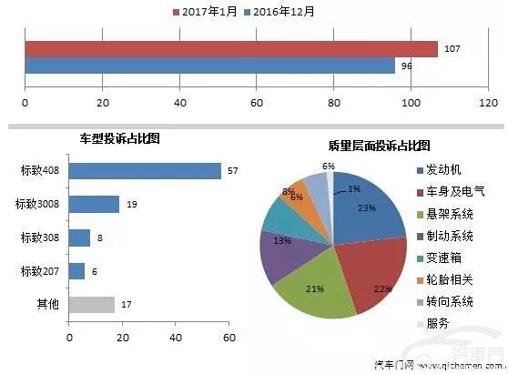 旗下產品標致408發(fā)動機燒機油質量投訴涉及數量最多,其次是標致308,涉及質量投訴主要圍繞發(fā)動機異響和懸架系統(tǒng)問題上。
