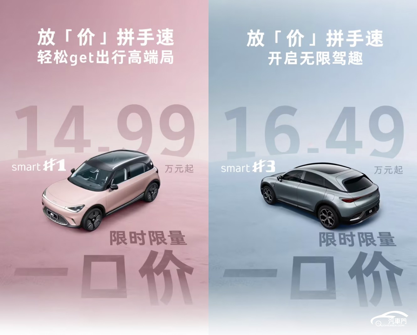 Smart汽車(chē)也針對(duì)旗下兩款車(chē)型推出了“限時(shí)一口價(jià)”政策,旗下兩款主銷(xiāo)車(chē)型——smart精靈#1和smart 精靈#3的售價(jià)分別為14.99萬(wàn)和16.49萬(wàn)起,同時(shí)選配限時(shí)全免。其中,smart精靈#1有三款車(chē)型可享受限時(shí)政策及3年0息,一口價(jià)區(qū)間14.99萬(wàn)-19.49萬(wàn)元,方向盤(pán)加熱+前排座椅加熱+前排座椅通風(fēng)永久包限時(shí)0元,至高價(jià)值6000元商城選購(gòu)基金,以舊換新補(bǔ)貼至高1.5萬(wàn)元以及地方消費(fèi)補(bǔ)貼至高5000元。