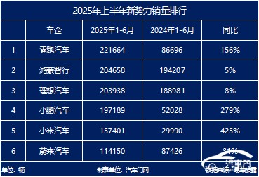 2025年上半年新勢(shì)力銷量盤點(diǎn):零跑真的在領(lǐng)跑