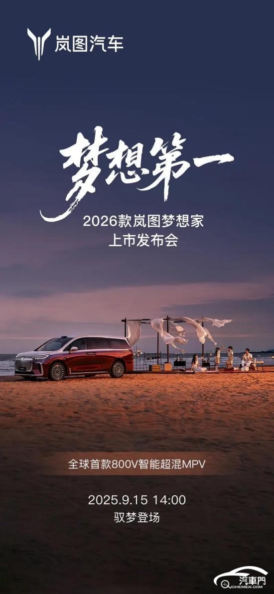 日前,嵐圖汽車官方宣布,旗下2026款嵐圖夢想家將于9月15日正式上市。新車已在成都車展上開啟預(yù)售,預(yù)售價格區(qū)間為38.99-45.99萬元。