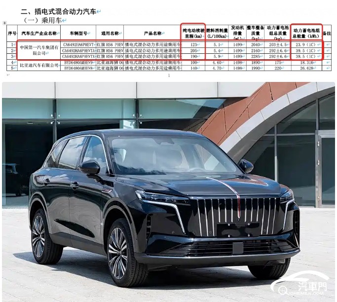 最大純電續(xù)航205公里 紅旗HS6 PHEV續(xù)航信息曝光