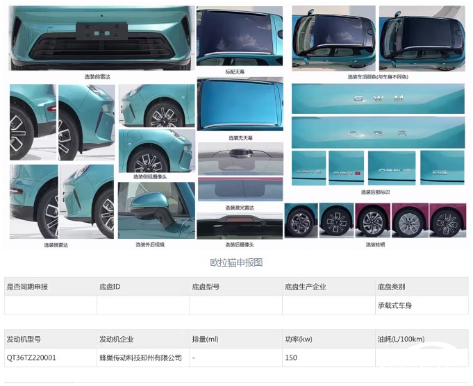 配置方面,新車將可選車頂激光雷達、后攝像頭、側(cè)面雷達、雙色車身、無天幕以及多種造型的輪圈。動力上,新車將搭載最大功率150千萬的電機,搭配蜂巢能源磷酸鐵鋰短刀動力電池,同時還將搭載來自菲格科技EAi的線控制動系統(tǒng)。關(guān)于歐拉品牌的更多消息,我們會持續(xù)跟進。