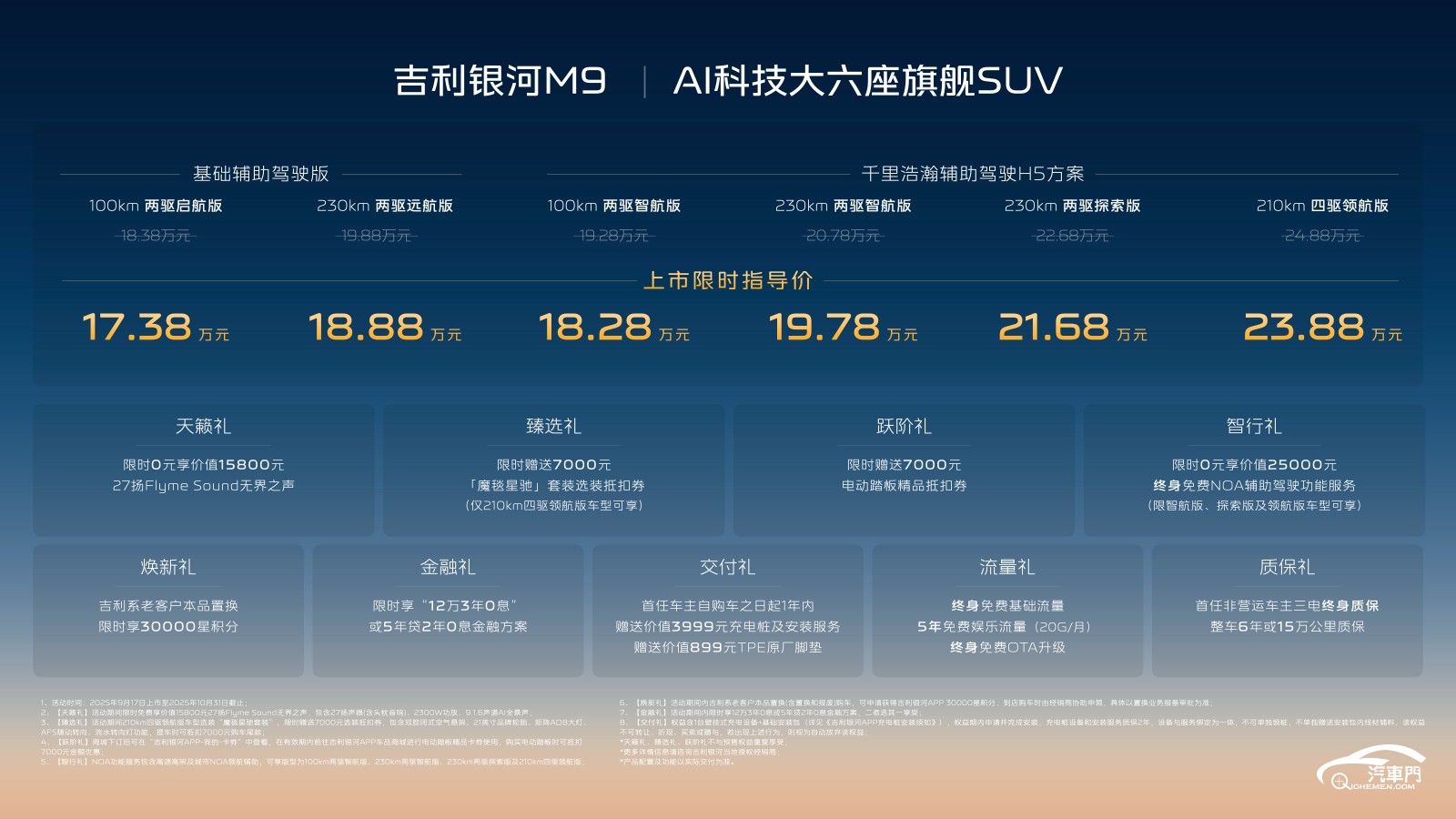 限時(shí)17.38萬(wàn)起!吉利銀河M9正式上市,全域AI體驗(yàn),樹(shù)立大六座SUV價(jià)值新標(biāo)桿