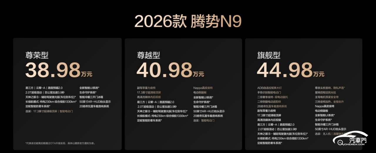 售38.98萬元起 2026款騰勢N9正式上市