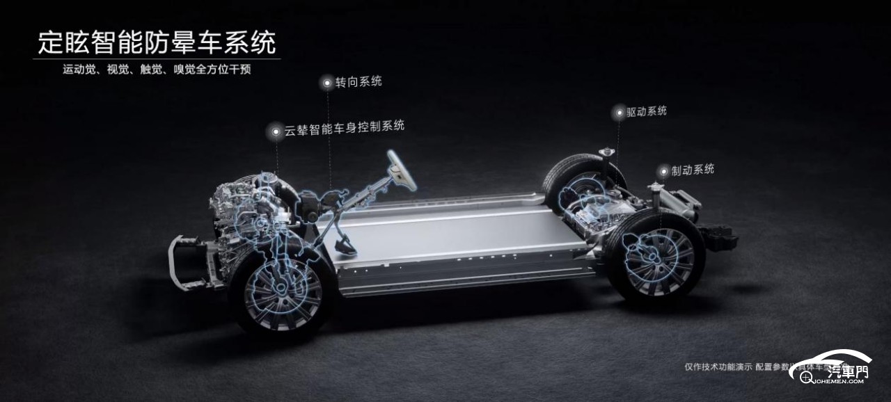 騰勢N9搭載定眩智能防暈車系統(tǒng),并已通過“中汽中心”、“中國人民解放軍空軍特色醫(yī)學中心”的嚴苛認證,該系統(tǒng)以云輦智能車身控制系統(tǒng)為核心,通過聯動底盤、動力、座艙三大系統(tǒng),實現對運動覺、視覺、嗅覺、觸覺等全方位干預,讓用戶告別暈車!