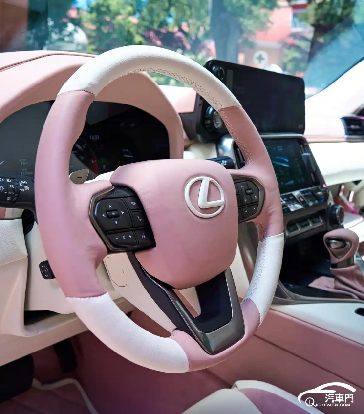 這款概念車的獨(dú)特外觀由雷克薩斯?fàn)I銷高級(jí)總監(jiān)Lisa McQueen主導(dǎo)設(shè)計(jì)。車輛采用珍珠質(zhì)感的閃耀粉色貼膜車衣,并配備大尺寸的多條輻輪圈,整體視覺(jué)效果非常張揚(yáng),辨識(shí)度拉滿。此外,車輛前后Logo以及字母標(biāo)識(shí)均采用鉆石質(zhì)感材質(zhì)鑲嵌,陽(yáng)光下十分閃耀。