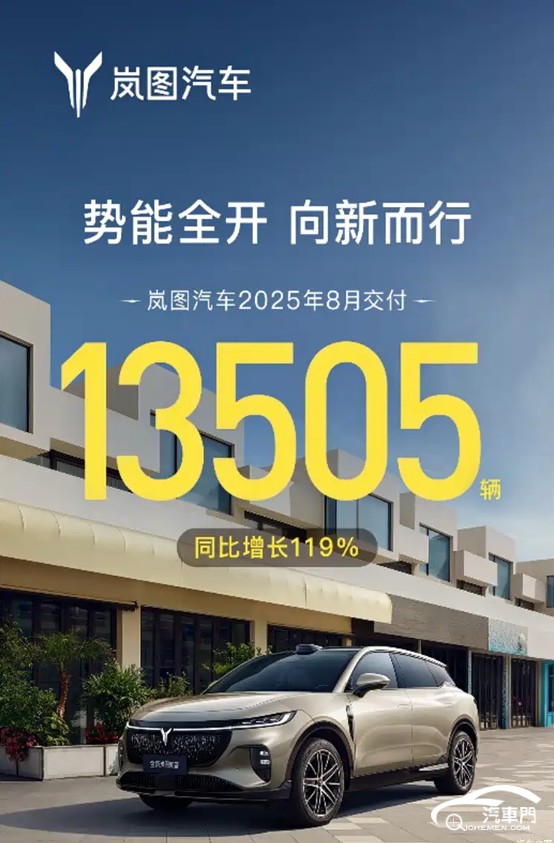 值得一提的是,在今年嵐圖品牌還將推出兩款全新車型,分別是嵐圖追光L以及嵐圖泰山,進一步豐富全品類的產(chǎn)品矩陣。市場表現(xiàn)方面,2024年,嵐圖汽車實現(xiàn)交付85697輛,同比增長約70%。2025年1-8月累計交付81768輛,同比增幅92%,8月單月交付達13505輛,同比增長119%。截至今年8月,嵐圖汽車已連續(xù)6個月交付量超過10000輛。