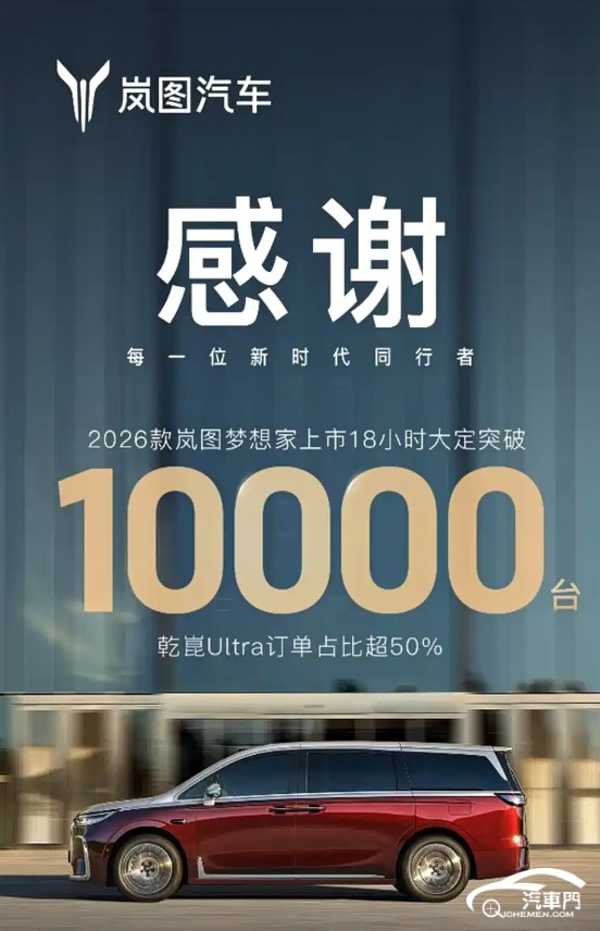 產(chǎn)品層面,新款嵐圖知音完成上市,全系搭載800V高壓碳化硅平臺,并集成華為乾崑智駕ADS 4.0與鴻蒙座艙HarmonySpace 5.0等配置,上市12分鐘,大定訂單即突破3000輛,與嵐圖FREE+形成“純電+混動”雙產(chǎn)品線。此外,2026款嵐圖夢想家也在此前完成上市,集成800V高壓平臺、5C超充、62.5度大電池、華為ADS 4.0、鴻蒙座艙5.0及智能后輪轉(zhuǎn)向等配置,上市18小時訂單突破10000輛。