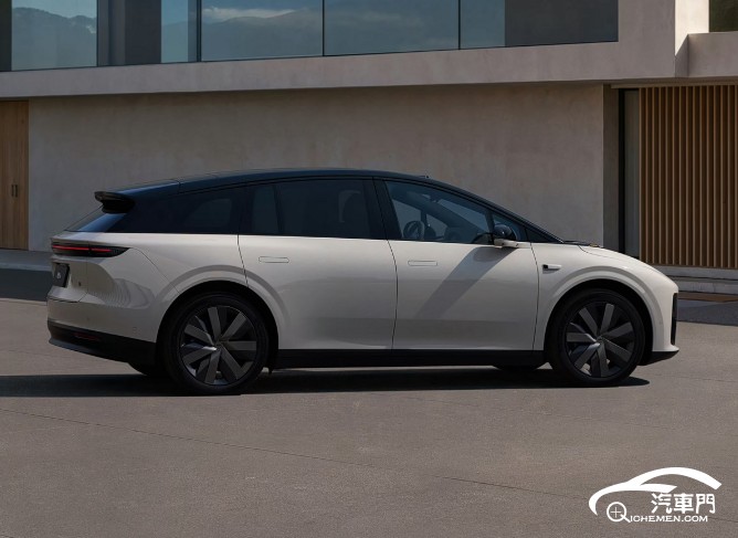 車身側(cè)面,理想i6依然保持大軸距設(shè)計,前后車門的尺寸與理想i8接近,主要縮減的部分是后排車門以后的部分,因為沒有第三排座椅,因此車輛尾部看上去更緊湊。車身尺寸方面,新車長寬高分別為4950/1935mm/1655mm,軸距為3000mm,對比理想i8,車長減少135mm,車寬減少35mm,高度降低85mm,軸距減少50mm,前兩排的空間縮減不算大。并擁有21英寸輪圈可選。