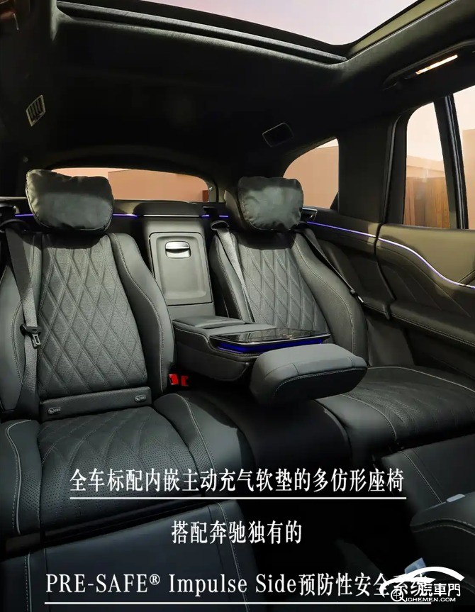來到車內(nèi),邁巴赫GLS 480禮逸版依舊配備MBUX智能人機交互系統(tǒng)并集成中國市場專屬應用,車內(nèi)采用大面積Nappa真皮包裹,提供黑色、紅木棕色/瑪奇朵米色兩種顏色,并配備MANUFAKTUR高定專屬組件。全車標配主動充氣軟墊座椅并具備PRE-SAFE預防性安全系統(tǒng),配置方面還提供Burmester音響系統(tǒng)、專屬NO.8香氛系統(tǒng)以及動態(tài)邁巴赫徽標迎賓燈等。