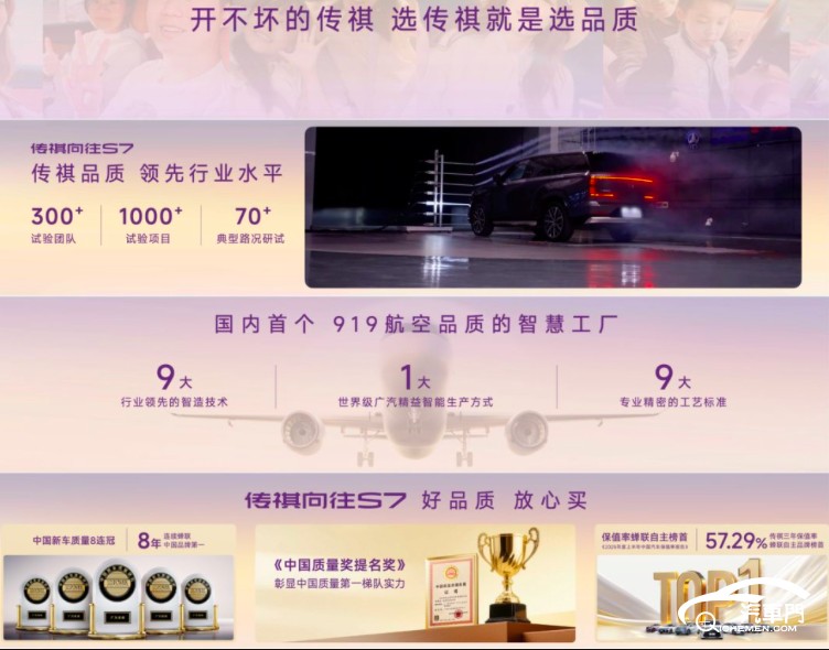 “選傳祺就是選品質(zhì)”在向往S7 Pro+上得到充分印證。研發(fā)階段,300多人的試驗團隊歷經(jīng)1000多個試驗項目,在全國70多個典型路況完成全面研試,配合遠超行業(yè)水平的設(shè)計標準與測試設(shè)備,確保車輛“開不壞、開得久”。生產(chǎn)環(huán)節(jié)依托國內(nèi)首個919航空品質(zhì)智慧工廠,融合9大領(lǐng)先智造技術(shù)與9大精密工藝標準,以世界級精益智能生產(chǎn)方式把控每一處細節(jié)。