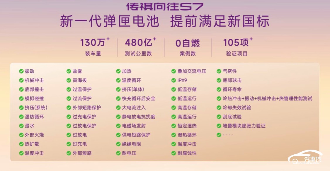電池安全方面,新車搭載的新一代彈匣電池已滿足2026年實施的安全新國標,通過105項嚴苛安全測試,截至目前已搭載于超130萬臺車輛,累計行駛480億公里實現(xiàn)零自燃。借助隔膜精準閉孔技術(shù)形成天然“防火墻”,電池經(jīng)Z型對折、暴力錘擊甚至360°扭麻花測試仍能穩(wěn)定運行,真正做到不怕磕、不怕碰。