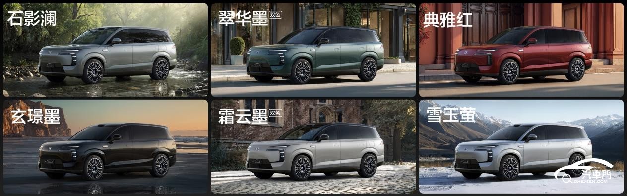 騰勢N8L在外觀設計上延續(xù)了品牌"優(yōu)雅之勢"的家族設計語言,整體造型追求寬闊舒展的視覺效果,力圖展現(xiàn)大型SUV應有的沉穩(wěn)氣場。車輛提供六種外觀顏色選擇,其中包括四款單色:典雅紅、雪玉螢、玄璟墨、石影瀾,以及兩款高定雙色:霜云墨和翠華墨。據(jù)騰勢官方所述,這些顏色的設計靈感源自華夏文明瑰寶,試圖將東方美學與現(xiàn)代工業(yè)設計進行融合。