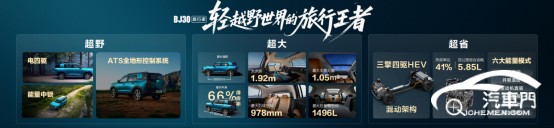 BJ30旅行家采用北京越野獨家研發(fā)的“三擎四驅(qū)六模HEV混動架構(gòu)”,百公里綜合油耗低至5.85L,具備純電、串聯(lián)、并聯(lián)、直驅(qū)、能量回收、駐車充電六大動力模式,系統(tǒng)會根據(jù)車速、路況、油門深度等參數(shù),在各種模式間智能切換;搭載混動專用發(fā)動機,熱效率高達41%。