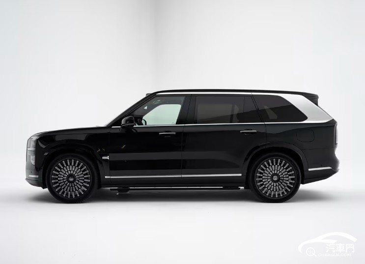 車身側(cè)面,新車采用飛橋游艇懸浮式車頂,車型尺寸方面,新車長寬高分別為5239/2029/1819mm,軸距為3169mm。22英寸鏡面鍛造輪圈是極氪9X最具標(biāo)志性的身份象征。后排車門最大寬度超過1米,開門角度接近直角。
