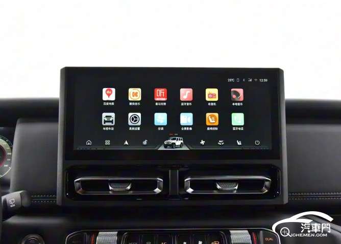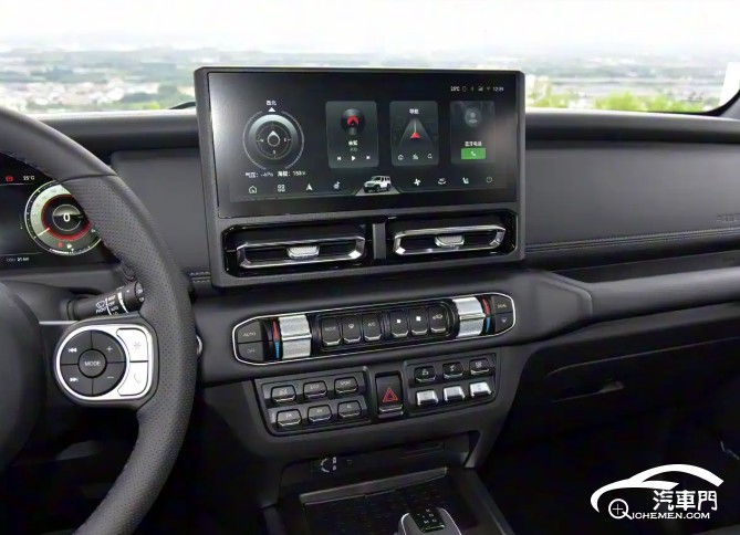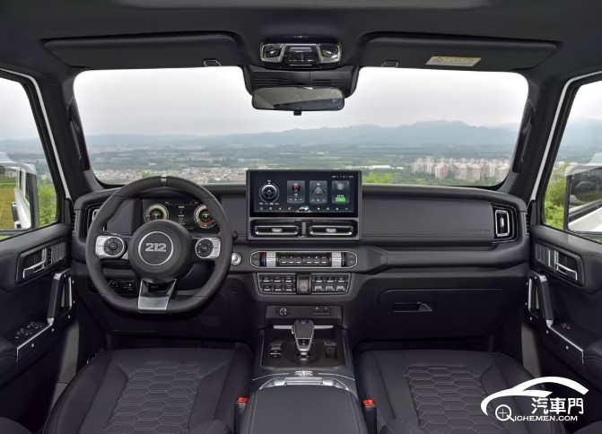 內(nèi)飾方面,212 T01盡可能保留了物理按鍵,同時(shí)也加入了大尺寸的懸浮式中控屏,還配備了電子擋桿和電子手剎。整體保持原汁原味的硬派風(fēng)格,同時(shí)也能保證一定的舒適性。