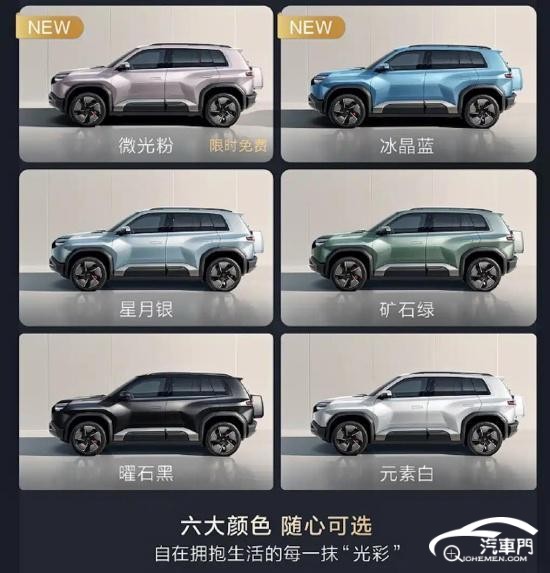 新車側(cè)面采用分段式腰線以及外擴(kuò)式輪眉設(shè)計(jì),塑造出十足的肌肉感。車尾造型較為方正,長(zhǎng)條形尾燈組與日間行車燈相呼應(yīng),背負(fù)式儲(chǔ)物箱強(qiáng)化了整車的越野屬性。此外,新車還新增了微光粉和冰晶藍(lán)兩款車漆顏色,進(jìn)一步豐富消費(fèi)者的選擇。