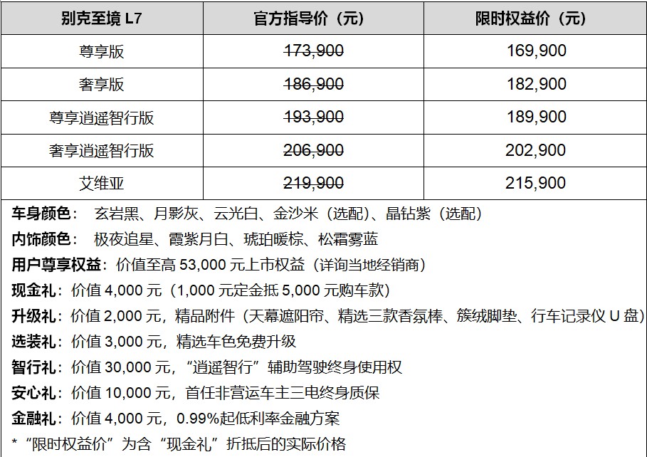 限時(shí)權(quán)益價(jià)16.99-21.59萬元 別克至境L7正式上市