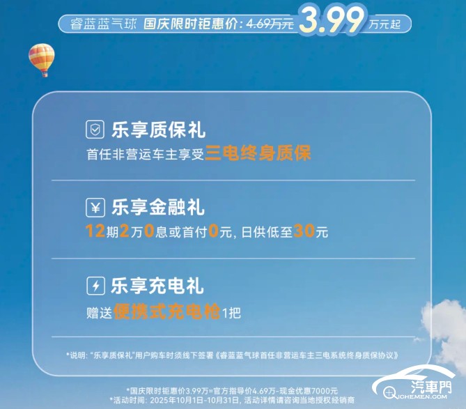 限時(shí)3.99萬起 睿藍(lán)藍(lán)氣球10月購(gòu)車權(quán)益發(fā)布