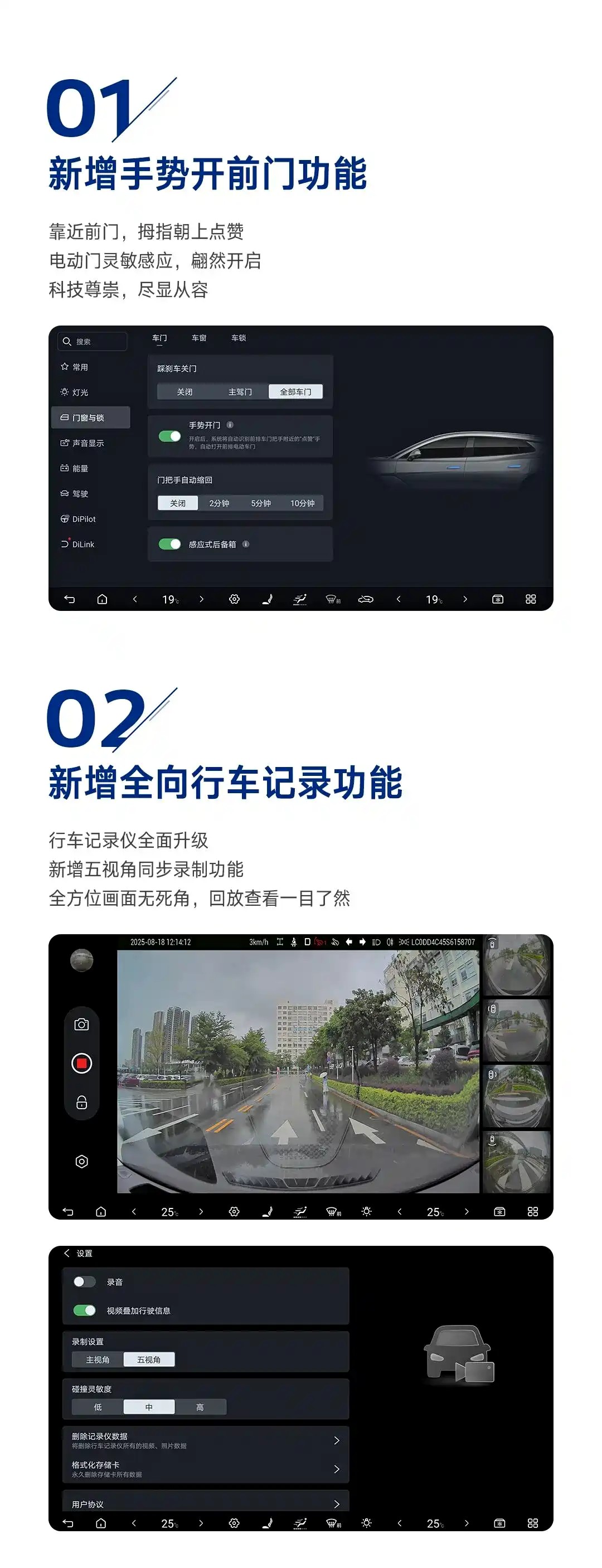 此次OTA新增的手勢開前門功能,讓車主靠近前門時只需做出拇指朝上的“點贊”手勢,電動門便會靈敏感應(yīng)開啟;新增AR腳踩感應(yīng)開啟背門功能(適用于Ultra版車型),通過車尾AR虛擬圖標(biāo)區(qū)域的腳踩感應(yīng),實現(xiàn)后備箱自動開啟。優(yōu)化車輛解閉鎖與電動門控制邏輯,智能解閉鎖功能支持靠近車輛自動解鎖、離開自動上鎖,無需手動操作;電動門開關(guān)便利性提升后,短按微動開關(guān)可控制車門開關(guān),長按則能實現(xiàn)車輛解閉鎖。此外,“踩剎車關(guān)門”的常用操作得以保留,滿足用戶多樣化使用習(xí)慣。