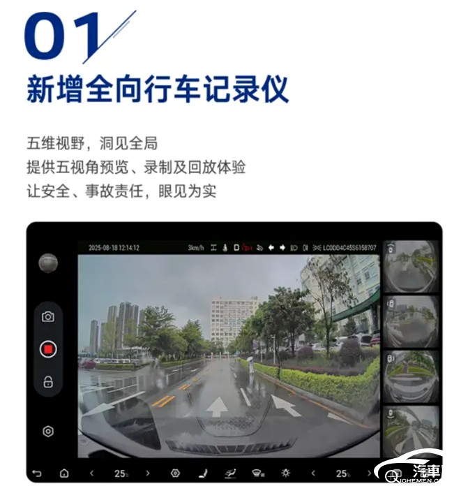 在行車(chē)安全保障方面,騰勢(shì)N9此次OTA新增全向行車(chē)記錄儀功能,提供五視角預(yù)覽、錄制及回放體驗(yàn),支持視頻疊加行駛信息,可清晰記錄行車(chē)過(guò)程中的關(guān)鍵場(chǎng)景,為安全事故責(zé)任認(rèn)定提供直觀依據(jù)。