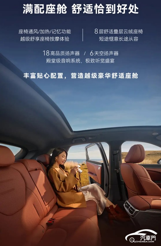 車輛內(nèi)飾變化不大,依舊配備15.6英寸中控屏以及22.8英寸HUD抬頭顯示的組合,可支持Carplay和Hicar等手機(jī)互聯(lián)。配置方面擁有前排50W手機(jī)無線快充、前排座椅加熱、通風(fēng)、按摩以及18揚(yáng)聲器音響系統(tǒng)等等。此外,新車還會(huì)標(biāo)配L2級(jí)駕駛輔助功能,高配車型搭載高通8775艙駕一體芯片,支持城區(qū)/高速NOA和全場(chǎng)景智能泊車輔助等功能。