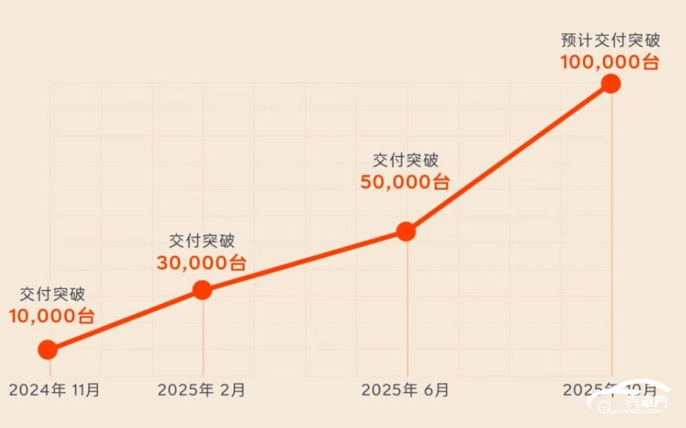 從交付數(shù)據(jù)脈絡(luò)來看,樂道汽車的增長曲線持續(xù)陡峭:2024年11月累計(jì)交付突破1萬臺,2025年2月累計(jì)交付達(dá)3萬臺,6月邁過5萬臺門檻,而最新數(shù)據(jù)顯示,截至9月底其累計(jì)交付已達(dá)90,279臺,距離10萬臺僅一步之遙。作為沖刺里程碑的關(guān)鍵節(jié)點(diǎn),2025年9月樂道品牌單月交付量再創(chuàng)新高,達(dá)到15,246臺,為達(dá)成階段性目標(biāo)奠定堅(jiān)實(shí)基礎(chǔ)。