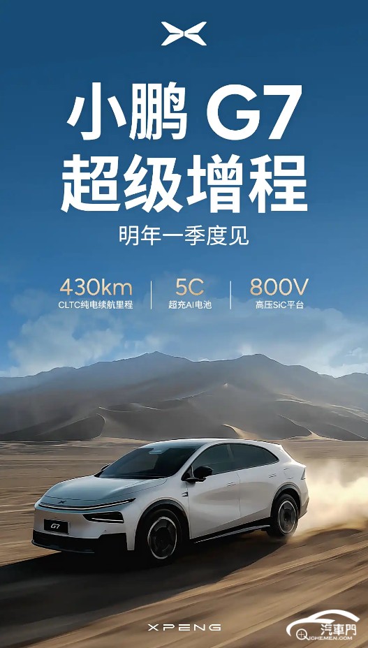 近日,工信部發(fā)布了《第二十二批減免車輛購置稅的新能源汽車車型目錄》。根據(jù)目錄信息,小鵬G7增程版續(xù)航申報(bào)信息曝光。新車將配備55.8kWh電池組,WLTC純電續(xù)航里為325公里(CLTC 430公里)。據(jù)悉,小鵬G7增程版將于2026年第一季度發(fā)布。