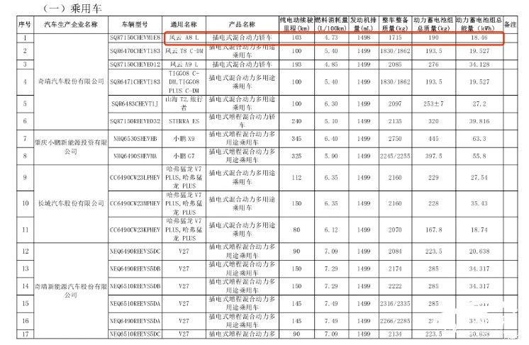 近日,工信部發(fā)布了《第二十二批減免車輛購(gòu)置稅的新能源汽車車型目錄》。根據(jù)目錄信息,新款奇瑞風(fēng)云A8L續(xù)航申報(bào)信息曝光。新車采用插電式混合動(dòng)力,將搭載18.46kWh電池組,電池重量為190kg,對(duì)應(yīng)的純電續(xù)航里程為103km。同時(shí),新車發(fā)動(dòng)機(jī)排量為1498mL,百公里燃油消耗量為4.73L。