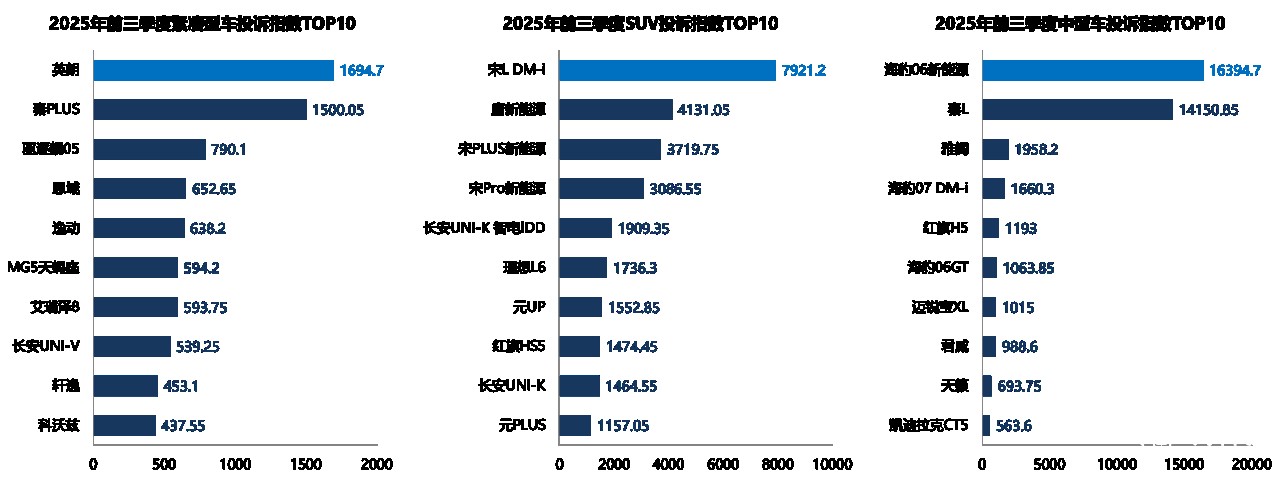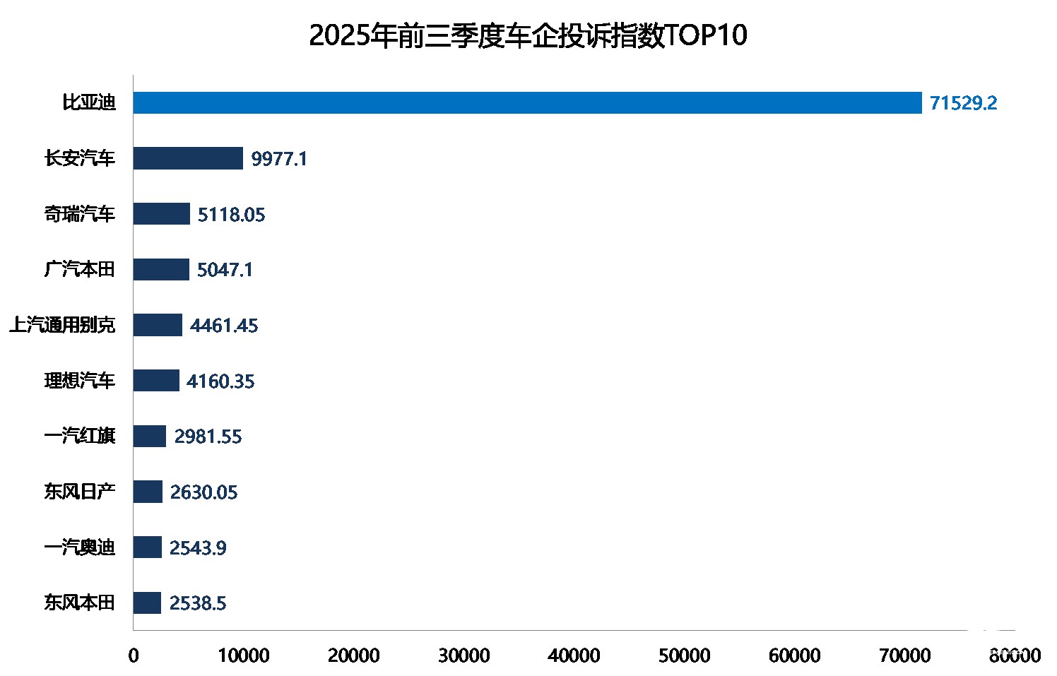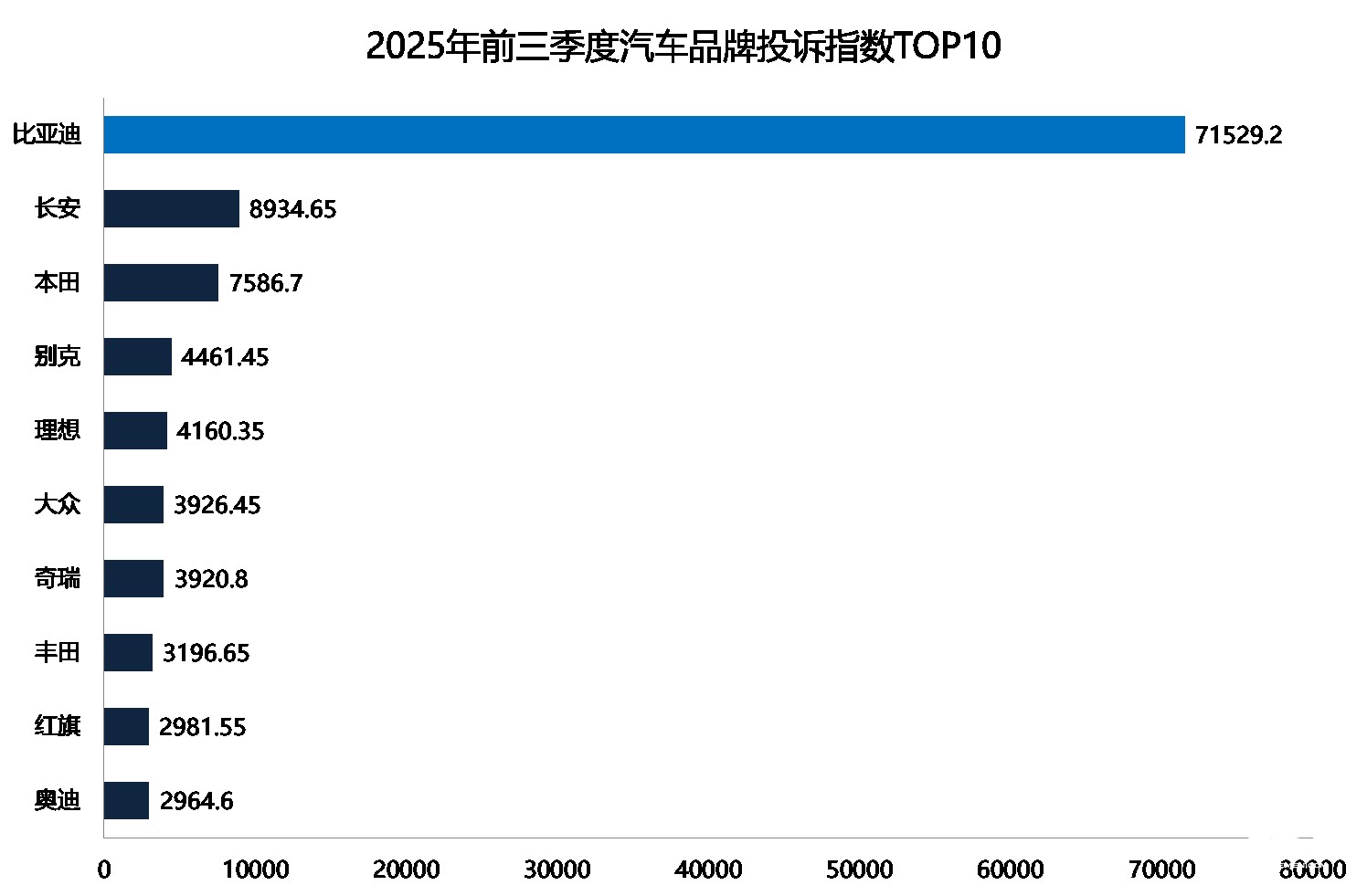 2025年前三季度汽車品牌投訴指數(shù)排行