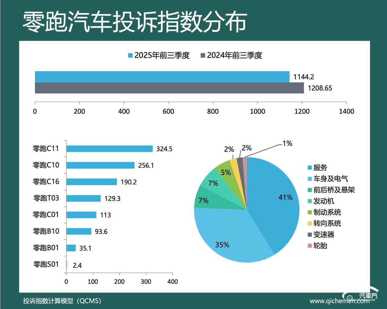 汽車質(zhì)量投訴點評:零跑汽車今年前三季度的投訴指數(shù)較去年同期相比變化不大,小幅下降了5.33%。從投訴反饋來看,零跑B01、零跑C10、零跑B10等多款車型不退訂金問題收到的投訴比較集中。與此同時,2024款和2023款零跑C10、零跑B10等多款車型的車機卡頓不升級問題的投訴呼聲也很高。
