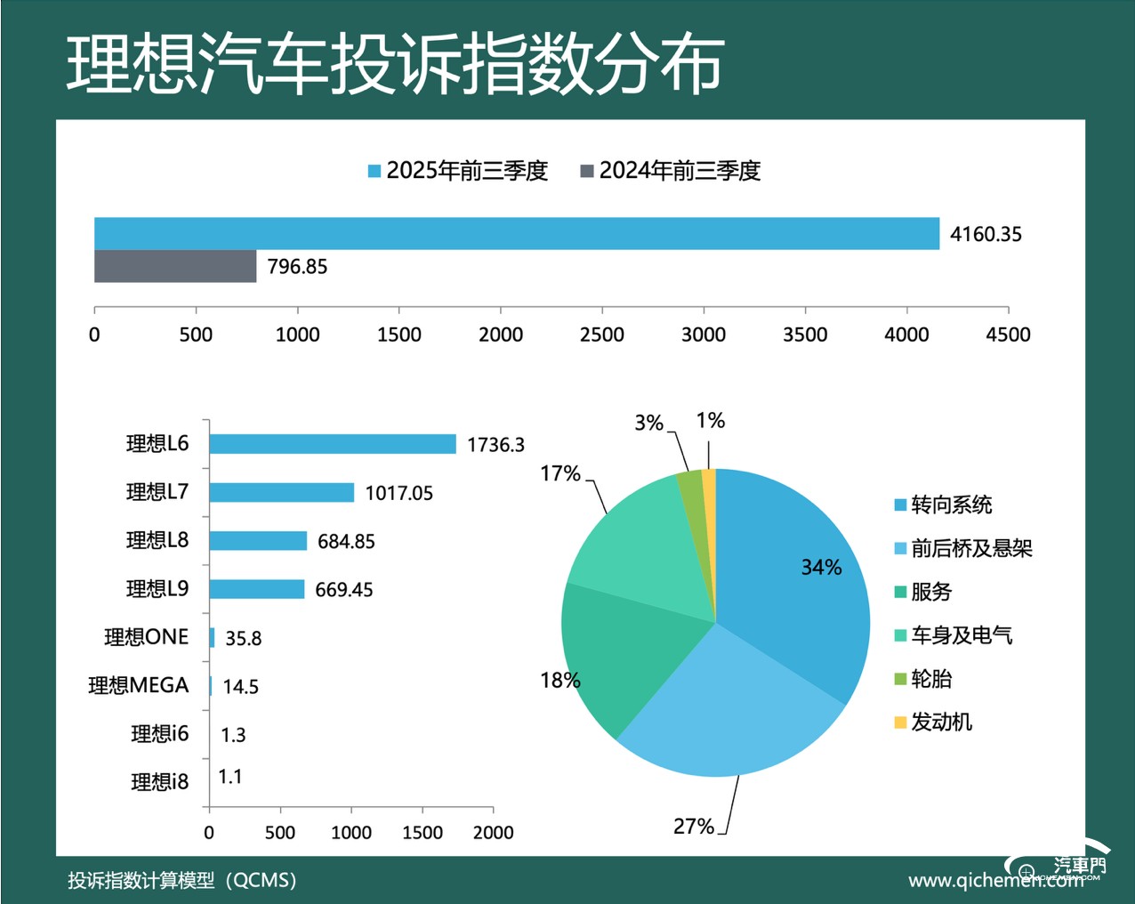 汽車質(zhì)量投訴點評:2025年前三季度理想汽車的投訴指數(shù)上漲了四倍多,憑借4160.35的高投訴指數(shù)登上了投訴指數(shù)榜首。下擺臂異響和新車變相降價兩大問題是理想汽車的典型問題。據(jù)悉各大網(wǎng)絡平臺關于理想汽車下擺臂異響的討論屢見不鮮。針對該問題,今年8月理想汽車發(fā)布提供統(tǒng)一解決方案的官方公告。然而多名理想汽車車主仍然反饋稱各地4S店的補償標準不統(tǒng)一,存在“同故障不同補償”的區(qū)別對待現(xiàn)象,并且售后客服響應效率低下。盡管理想汽車官方公告稱在今年7月31日前將相關問題零件全部處理完畢,但針對該問題的投訴卻仍舊不絕于縷。