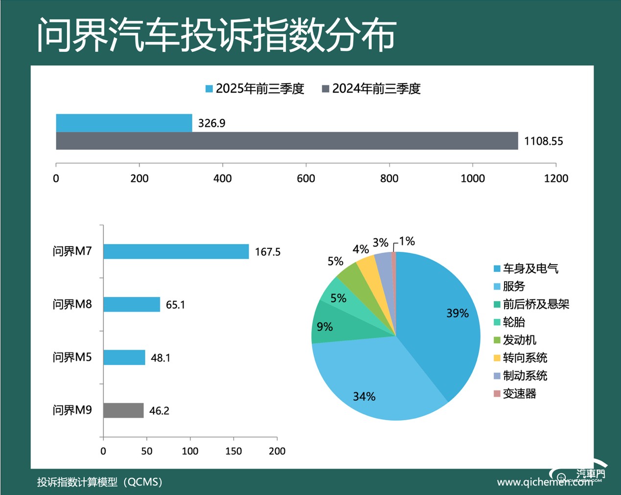 汽車質(zhì)量投訴點評:問界汽車今年前9個月的投訴指數(shù)為326.9,與去年前三季度的投訴指數(shù)相比,同比下跌了70.51%,問界汽車收到投訴的主要原因是價格變動和不退訂金。價格變動問題主要發(fā)生在2024款問界M7車型中。該問題收到集中投訴的時間段為今年的5月和6月。據(jù)悉,今年2月以來,問界汽車官方多次針對新款問界M7等車型推出最高52000元購車權益的優(yōu)惠政策和升級激光雷達、底盤、音響等配置,此舉引發(fā)不少問界M7老車主投訴。該車車主紛紛表示,希望廠家讓其付費升級。此外問界汽車還因不退訂金問題收到了投訴。