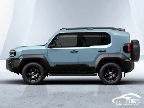 新車側(cè)面采用了五門設(shè)計,不過前門和后門的長度均不太長,C柱面積較大,整個側(cè)窗整體性較強。同時,新車還配備外擴輪眉、黑色側(cè)裙以及黑化的輪轂,進一步展現(xiàn)出越野氣息。另外,圓燈版還帶有涉水喉以及車頂行李架平臺,方燈版則是普通的車頂行李架。