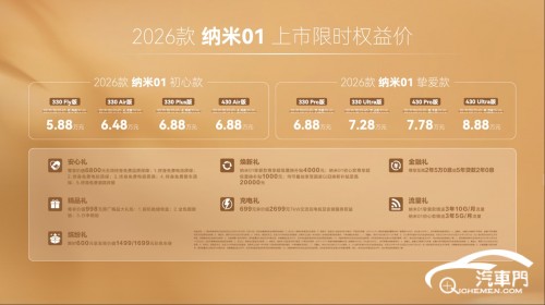 除了產(chǎn)品力本身,2026 款納米 01 還推出了 “七重大禮”,從購車、用車、售后等多個維度為用戶保駕護航,徹底打消用戶的 “后顧之憂”,讓 “輕松購車、安心用車” 成為現(xiàn)實。