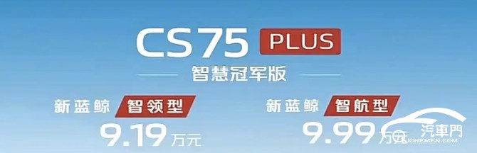 限時價9.19萬元起 長安CS75 PLUS智慧冠軍版上市