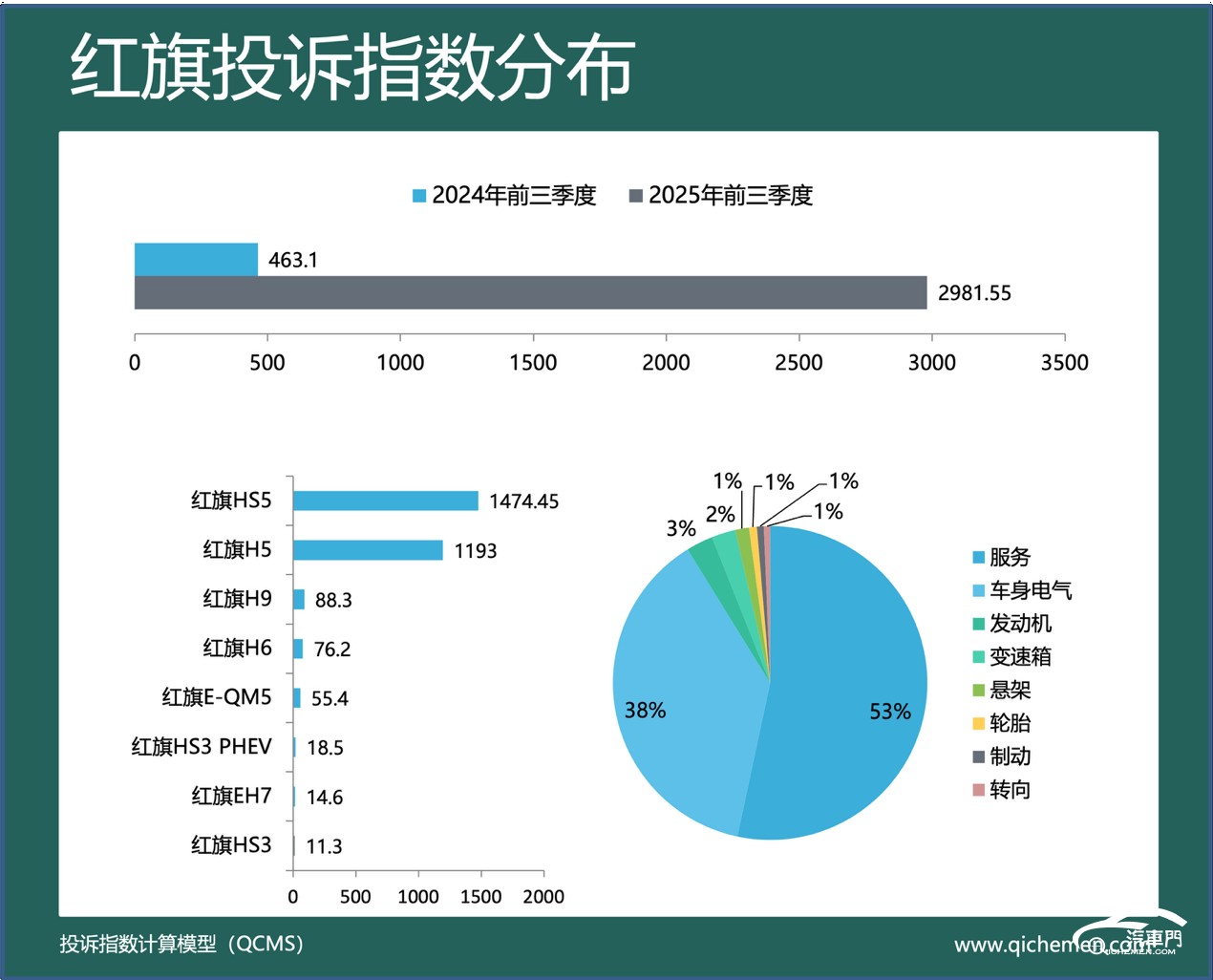 汽車(chē)質(zhì)量投訴點(diǎn)評(píng):今年前三季度,紅旗的投訴指數(shù)為2981.55,同比暴漲了五倍多。與去年同期相比,該品牌排名上升四位,沖向榜單第一。紅旗的車(chē)機(jī)卡頓不升級(jí)老問(wèn)題不僅沒(méi)有得到解決,反而收到了更大范圍的集中投訴。多位紅旗車(chē)主投訴稱(chēng),廠(chǎng)家承諾的今年第二季度車(chē)機(jī)系統(tǒng)升級(jí)遲遲未實(shí)現(xiàn),撥打客服得到的回復(fù)始終是“系統(tǒng)調(diào)試中,具體時(shí)間待定”。