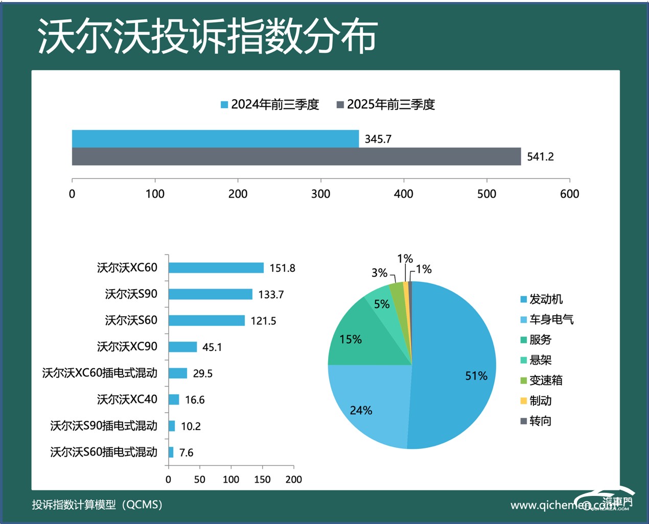汽車(chē)質(zhì)量投訴點(diǎn)評(píng):沃爾沃今年前三季度的投訴指數(shù)大幅上漲近六成,投訴指數(shù)為541.2。與奔馳相同,沃爾沃也因發(fā)動(dòng)機(jī)故障燈亮問(wèn)題遭到大量投訴。此外,不少新款沃爾沃車(chē)主反映,訂購(gòu)該車(chē)后至今銷(xiāo)售門(mén)店也未退還訂金。