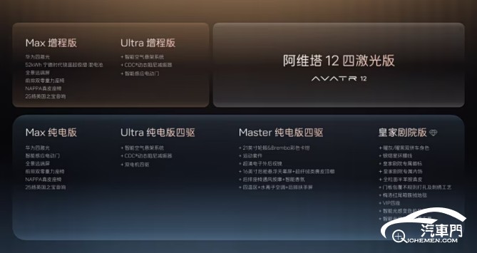 簡(jiǎn)單回顧,阿維塔12四激光版已于此前開(kāi)啟預(yù)售,至上市發(fā)布會(huì)前,可享受2000元意向金抵扣5000元購(gòu)車(chē)款的限時(shí)預(yù)售權(quán)益。外觀方面依舊秉承“未來(lái)美學(xué) Future Elegance”的整體設(shè)計(jì)理念,作為四激光雷達(dá)版車(chē)型,新車(chē)搭載華為乾崑ADS 4全場(chǎng)景智能輔助駕駛系統(tǒng),配備3顆長(zhǎng)距大激光雷達(dá)+1顆后向高精度固態(tài)激光雷達(dá)。同時(shí)新車(chē)還全系標(biāo)配駕駛輔助指示燈。