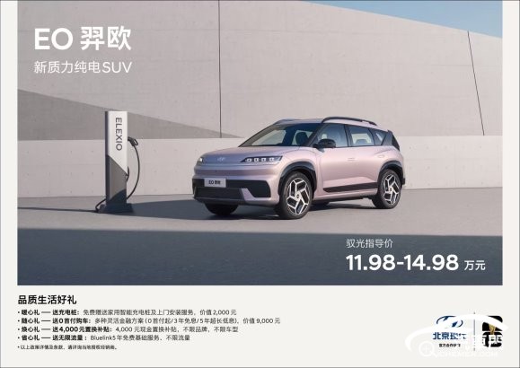 10月29日,北京現(xiàn)代首款純電平臺(tái)SUV—EO羿歐正式上市,指導(dǎo)價(jià)11.98-14.98萬元。同時(shí),發(fā)布會(huì)也公布了EO羿歐“送充電樁”、“送0首付購車”、“送4000元置換補(bǔ)貼”、“送無限流量”在內(nèi)的“品質(zhì)生活好禮”購車政策。