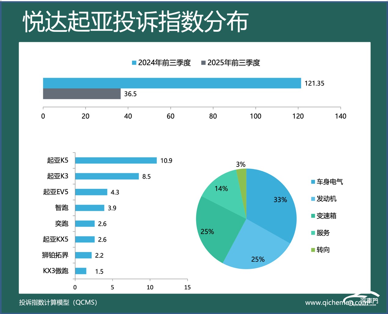 汽車(chē)質(zhì)量投訴點(diǎn)評(píng):今年前9個(gè)月,悅達(dá)起亞的投訴指數(shù)為36.5,同比下降69.92%。中控臺(tái)脫膠和發(fā)動(dòng)機(jī)故障燈亮是收到集中投訴的主要原因。2019年前年久失修的老款車(chē)是投訴重災(zāi)區(qū)。悅達(dá)起亞K3是收到集中投訴的主要車(chē)型。不少悅達(dá)起亞K3車(chē)主反饋,該車(chē)的儀表臺(tái)異常老化、脫膠粘手,要求廠家為其處理。此外,發(fā)動(dòng)機(jī)故障燈亮也是悅達(dá)起亞K3、悅達(dá)起亞K5車(chē)主經(jīng)常投訴的問(wèn)題。