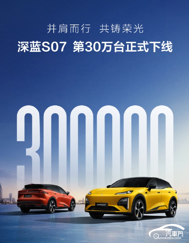 深藍(lán)汽車(chē)官方于近日宣布,旗下的S07車(chē)型第30萬(wàn)臺(tái)正式下線(xiàn)。