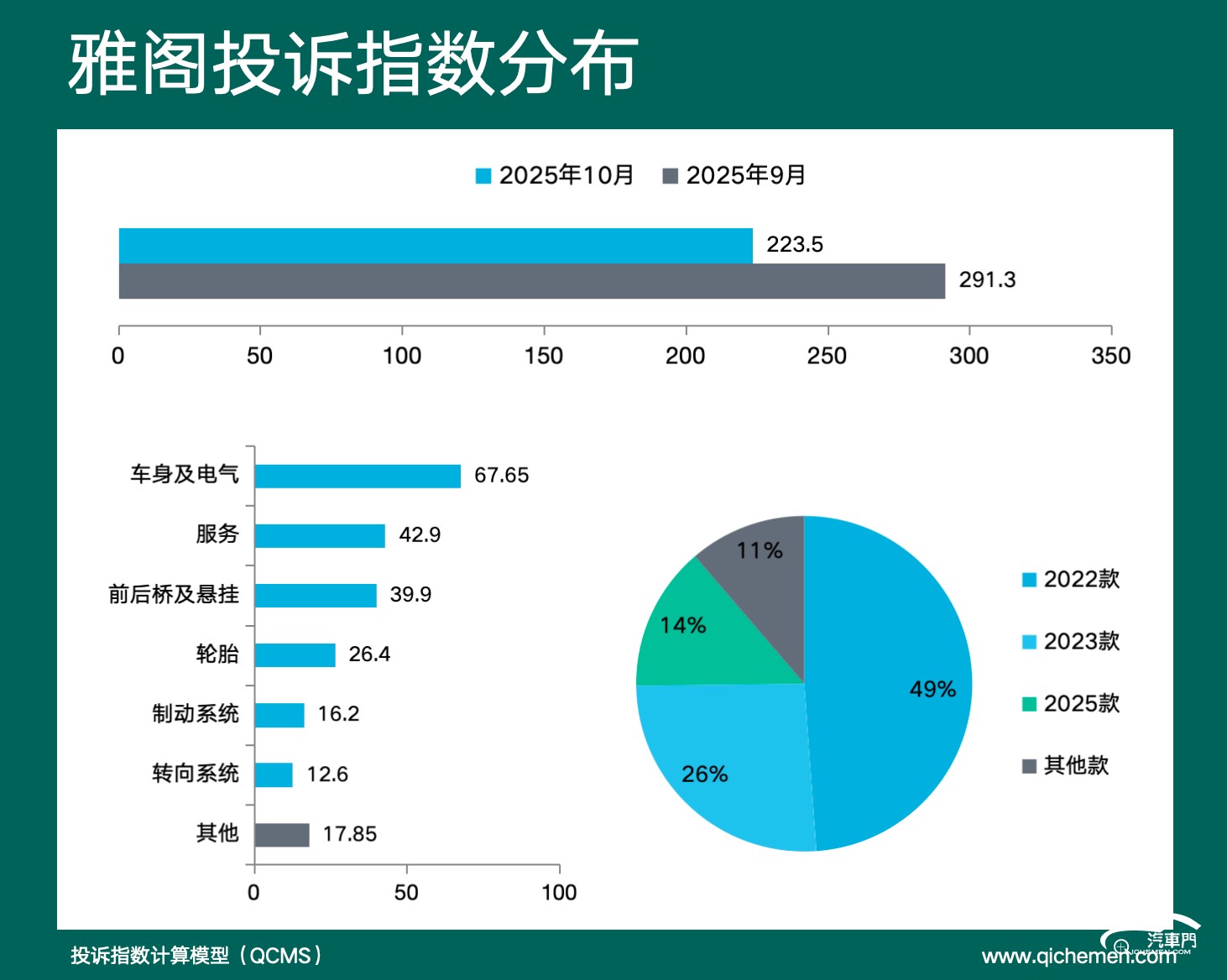 汽車質(zhì)量投訴點評:本月雅閣繼續(xù)下撤,投訴指數(shù)環(huán)比下滑23.27%,除了被車主持續(xù)投訴的吃胎偏慢問題外,2023款和2025款車型上又爆發(fā)出不少新問題,例如不少車主反饋尾燈存在開裂問題,多被4S店以外部原因造成為由推向自費維修;還有車主反饋中控屏出現(xiàn)開膠情況,同樣被拒絕保修,日系車的質(zhì)量神話正在落幕。