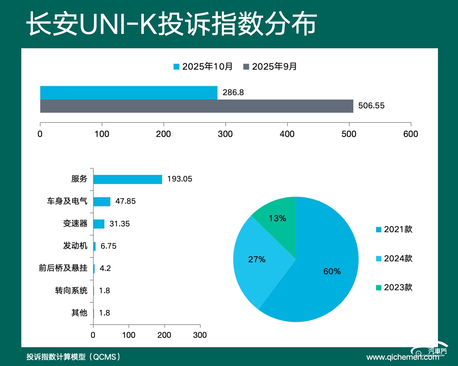 第四名:長安UNI-K 投訴指數(shù)286.8