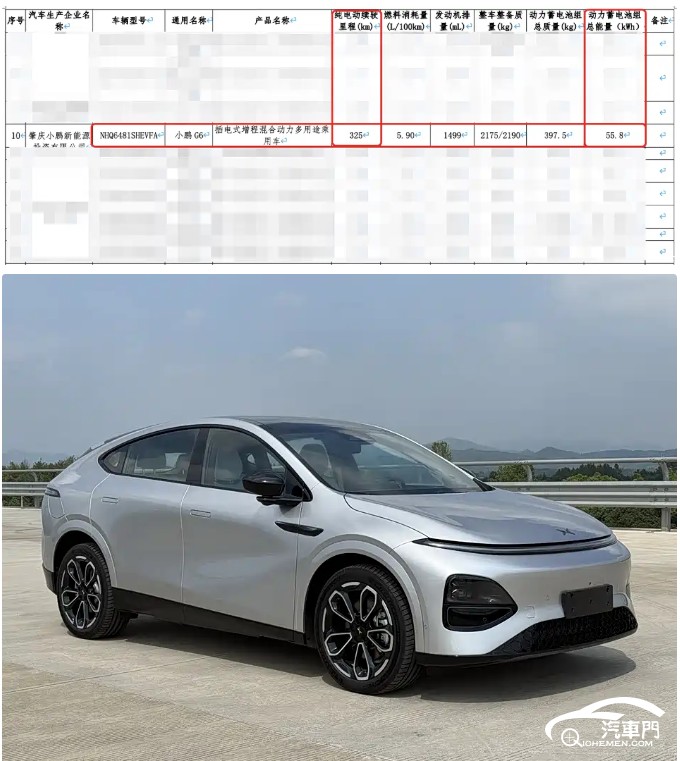 純電續(xù)航325公里 小鵬G6增程版續(xù)航申報信息曝光