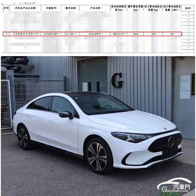 CLTC續(xù)航600公里 全新奔馳純電CLA長(zhǎng)軸距版新車型申報(bào)信息曝光